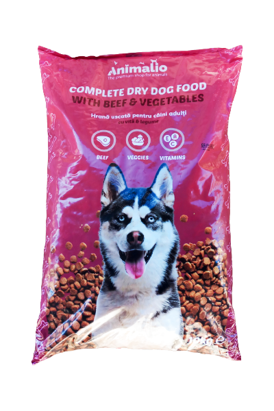 Cereale, derivate de origine vegetală, carne și derivate de origine animală (din care 4% carne de vită deshidratată), uleiuri și grăsimi, minerale, legume (0,3% legume deshidratate, echivalentul a 4% legume în crochete).